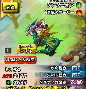 ・[水:1枠]☆3マーダイル(敵のステータス上昇効果を打ち消す、強力な強化スキルを